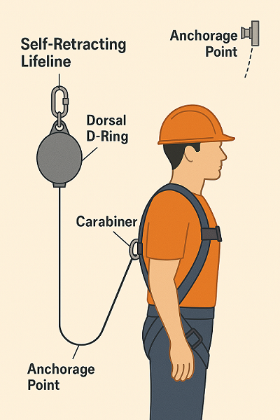 Retractable lifeline safety Fall protection equipment Self-retracting lifeline guidelines Working at heights safety tips